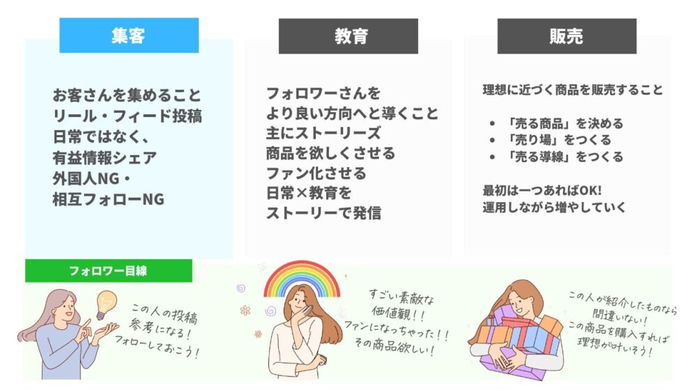 さて販売が終わったところで、ここからは集客・教育を同時に進めていきます。