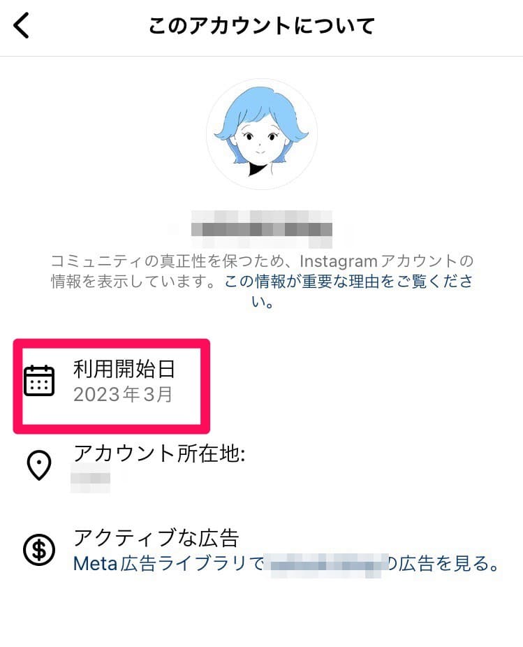 プロフィールの「…」を押して「このアカウントについて」から確認できるよ!
