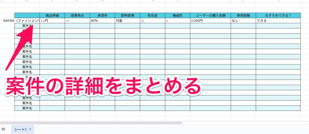 全て書き出した上で、1つでも現段階で紹介できる案件があること、これが重要になります。(フォロワーが増えれば、記事が増えれば、クローズドASPに今後審査が通るかもしれませんし、PR案件のお話も直接企業さんからもらえるかもしれません✨