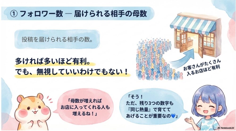 ①フォロワー数 ― 届けられる相手の母数