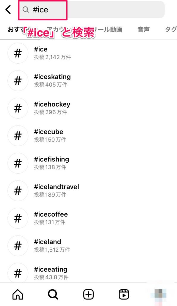 Instagramで言うタグは『#ハッシュタグ』にあたります。