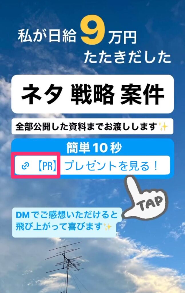 記事の一番上やストーリーのリンク欄など、ユーザーが認識できる位置に「本ページはプロモーションが含まれています」「PR」と記載する!