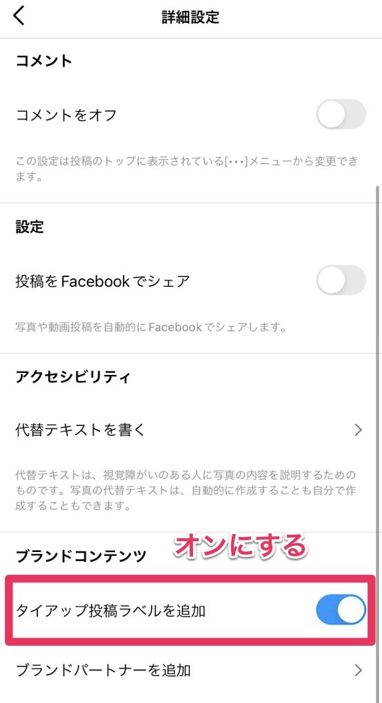 タイアップラベルとは、Instagramが提供するブランドコンテンツツールを使用して作成される投稿ラベルのことです。