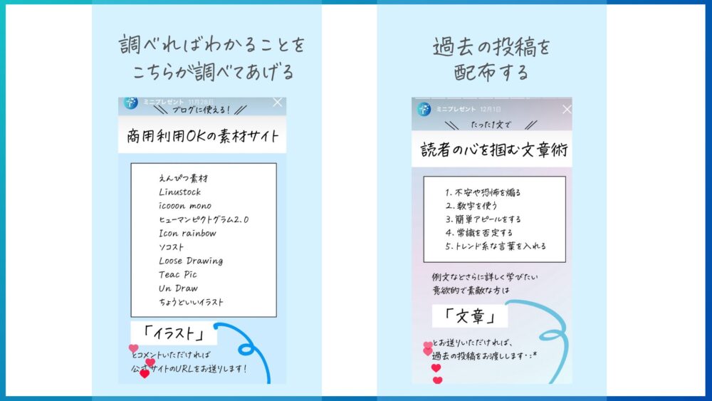 補足:【運用開始後&ブログあり限定】フィード・リール内でプレゼントとして記事を配布するパターン