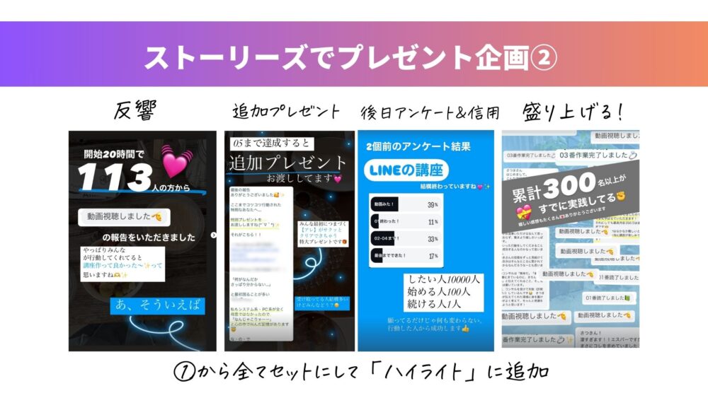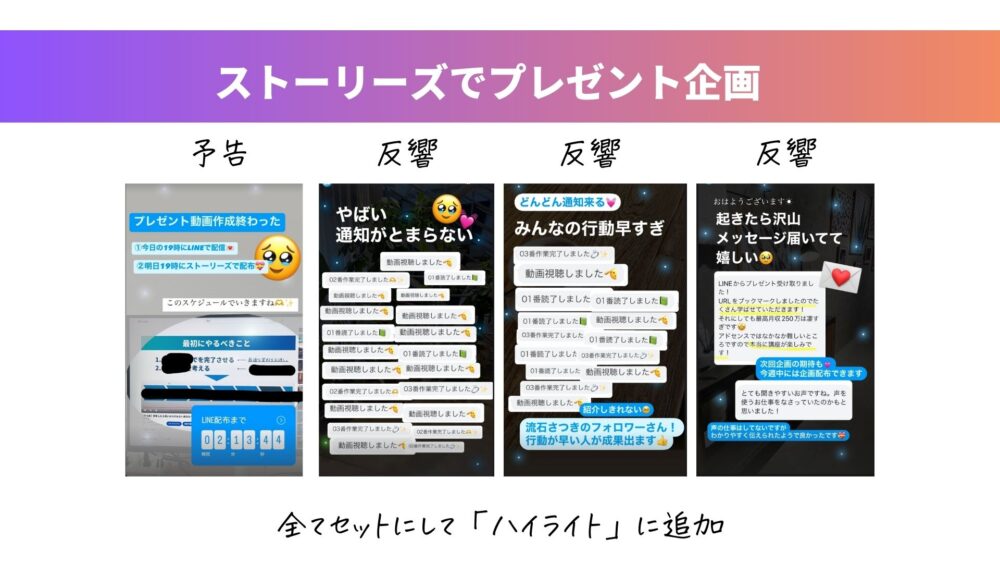 例:「気になる人はハイライトもチェックしてみてね!」 - ハイライトでいつでも見返せる導線にまとめる