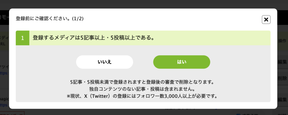 リンクの形式がブログと違ったり、フォロワー数が一定数達していないと掲載NGな場合があるよ!