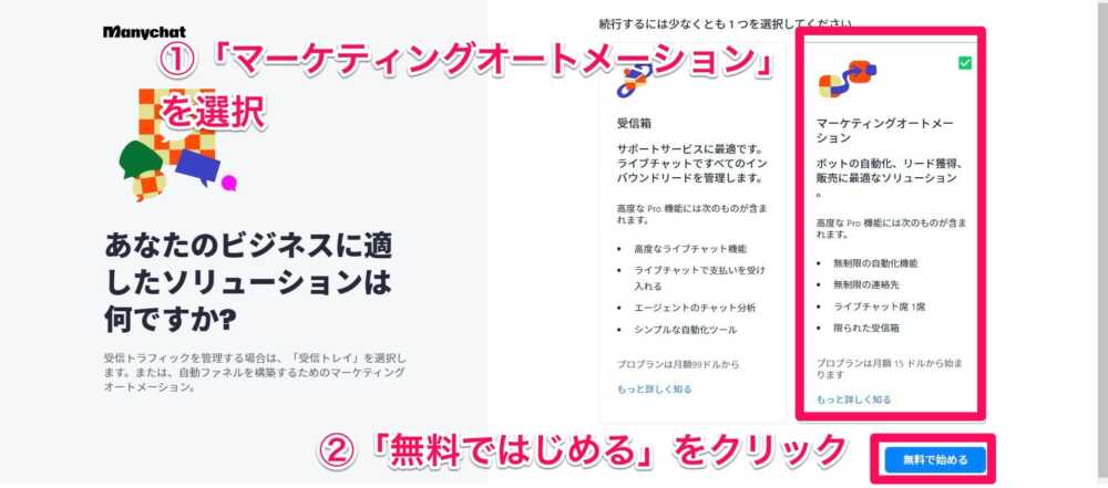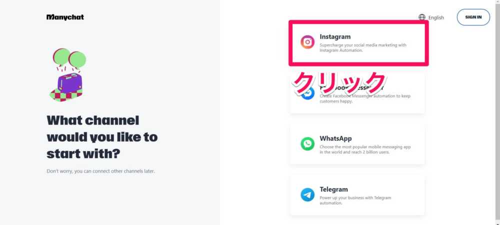 以下では、ManyChatの「チャットボット」のアカウント開設方法や操作方法、自動で反応するチャットボットの作り方を解説していきます!